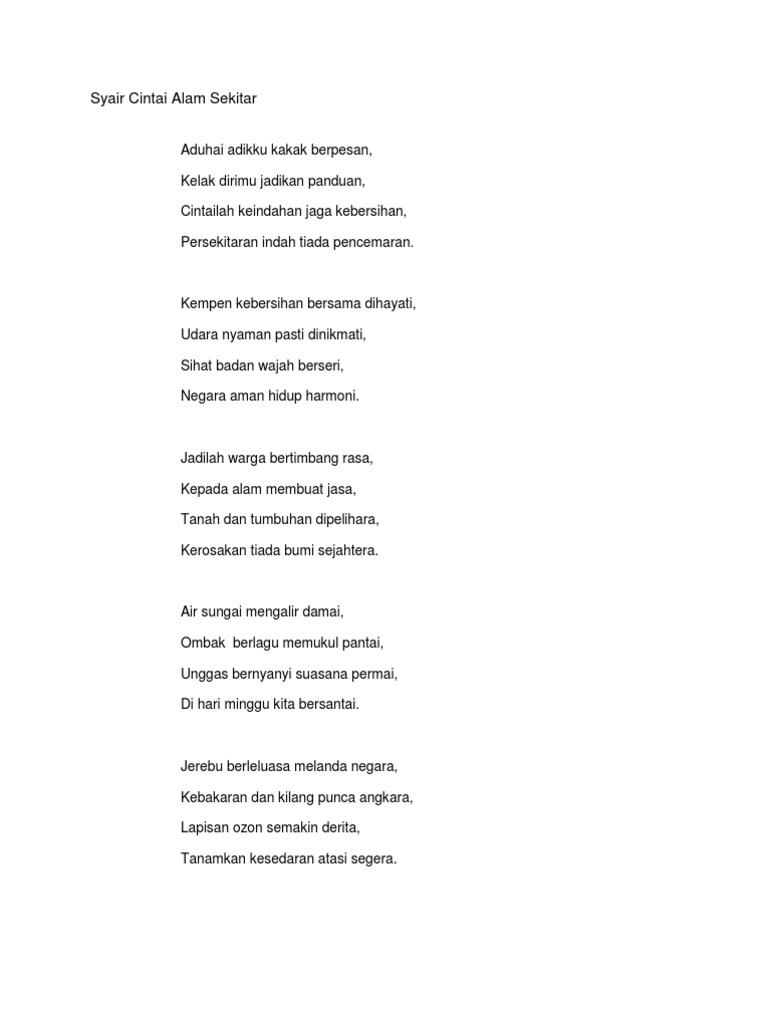 Ulasan Alam Sekitar from imgv2-2-f.scribdassets.com Kempen ini mendapat sokongan dan sambutan yang menggalakkan. Alam sekitar merupakan segala benda hidup dan bukan hidup yang wujud secara semula jadi di permukaan bumi, atau sebahagian daripadanya. Kita haruslah mengamalkan nilai sayang kepada alam sekeliling untuk menyelamatkan bumi kita. Alam sekitar adalah sesuatu yang penting dalam kehidupan manusia, tidak mengira bangsa, agama dan negara. Contact kempen kesedaran alam sekitar 2018 on messenger. Aduhai adikku kakak berpesan kempen kebersihan bersama dihayati, udara nyaman pasti dinikmati, sihat badan wajah berseri, negara aman hidup harmoni. Alam sekitar meliputi beberapa komponen utama: Semua pihak haruslah bekerjasama untuk menyelamatkan alam sekitar ataupun.