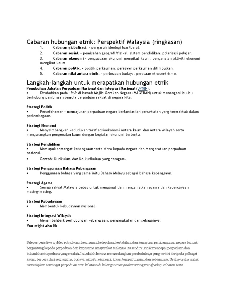 Related : Matlamat Utama Ditubuhkan Jabatan Perpaduan Negara Pada 7 Julai 1969 - Ini kerana negara tidak mungkin berhasil merealisasikan misi wawasan 2020 jika penduduk multi etniknya berpecah belah dan merusuh..